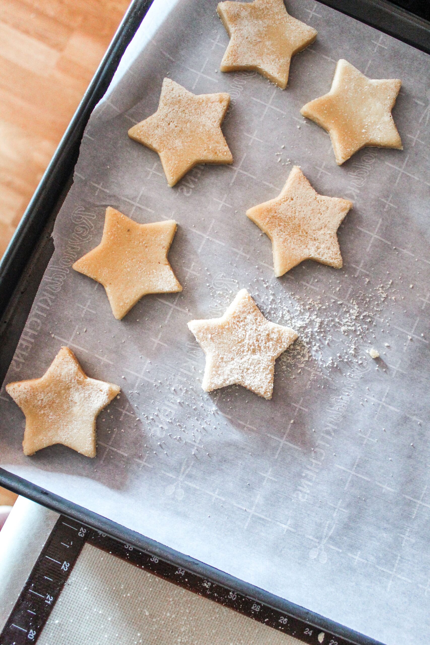 - Place the cutout cookies on a baking sheet lined with parchment paper, then bake at 350 for 18-22 minutes, until the edges of the cookies just start to brown.