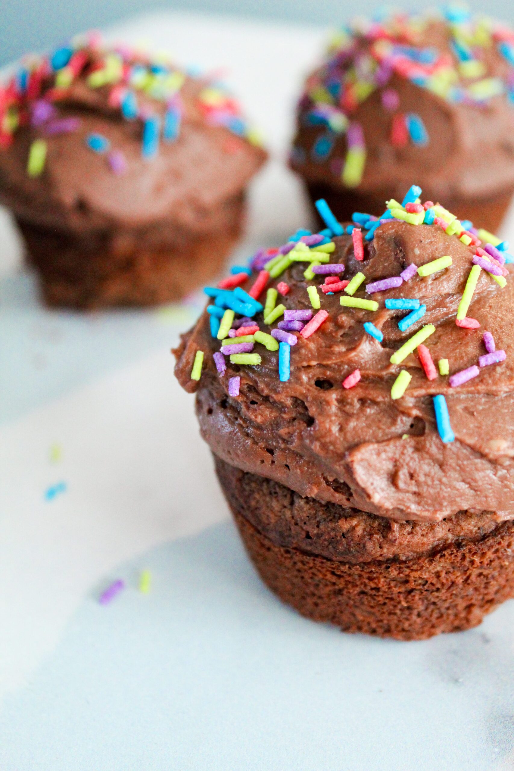 - Add in up to 1/4 cup of Almond milk to thin the cupcake batter to make it easier to scoop and settle in the muffin cavities.