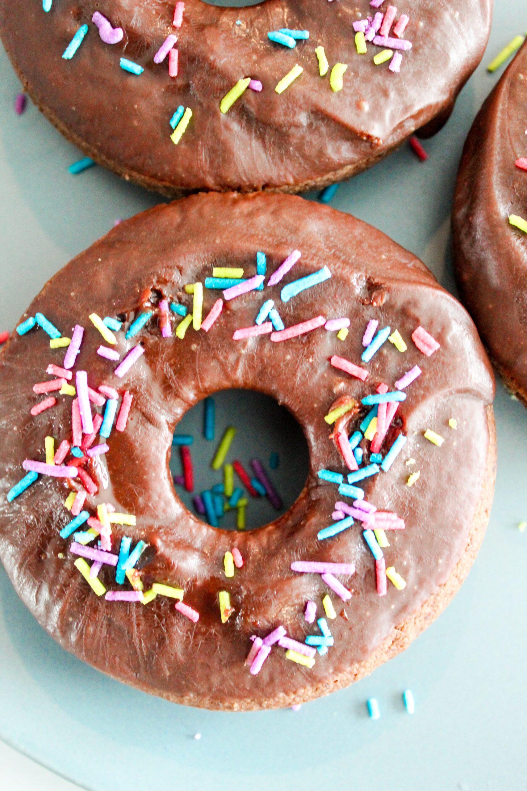 An easy to make Keto Chocolate Donut recipe. Perfectly tender, with chocolate fudge icing - and even sprinkles! Keto Chocolate Donuts are delicious fresh out of the oven with a cup of coffee, or stored in the fridge and then reheated for 10 seconds in the microwave.