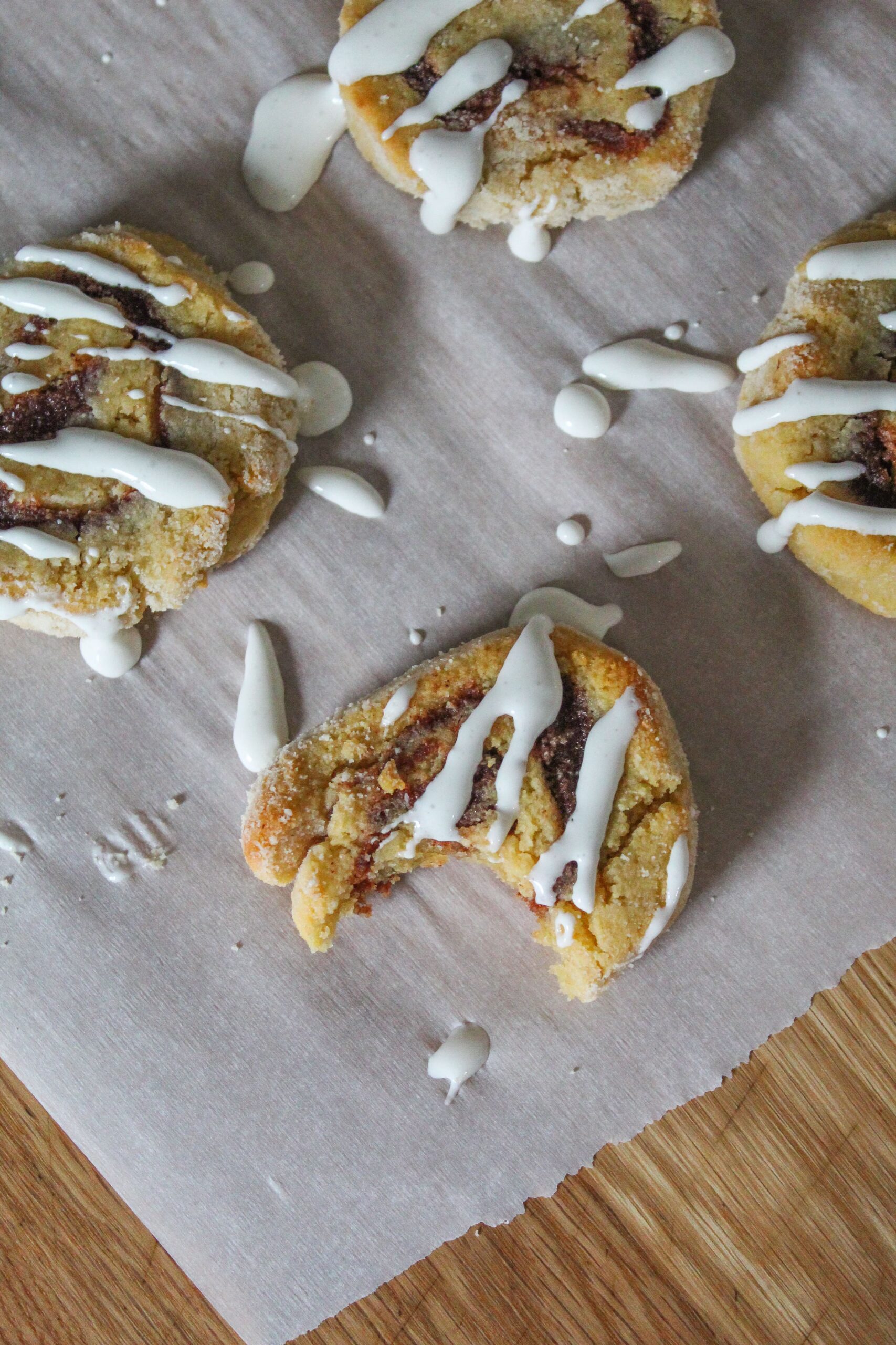 I think these cookies should be a part of your holiday baking. They're fun to make (even with kids), taste like a cinnamon roll, and you can hold them in one hand!