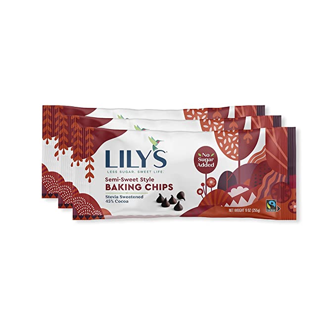 Semi-Sweet Style Baking Chips by Lily's Sweets | Made with Stevia, No Added Sugar, Low-Carb, Keto-Friendly | 45% Cocoa | Fair Trade, Gluten-Free & Non-GMO Ingredients | 3 Pack -