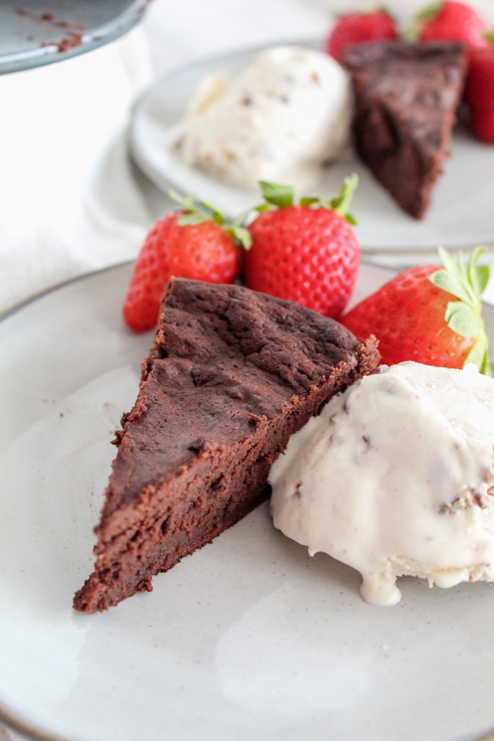 This cake is like a lava cake meets a super moist, delicious chocolate cake. It is so rich and decandent, meaning you only need a small slice to satisfy any chocolate cravings.