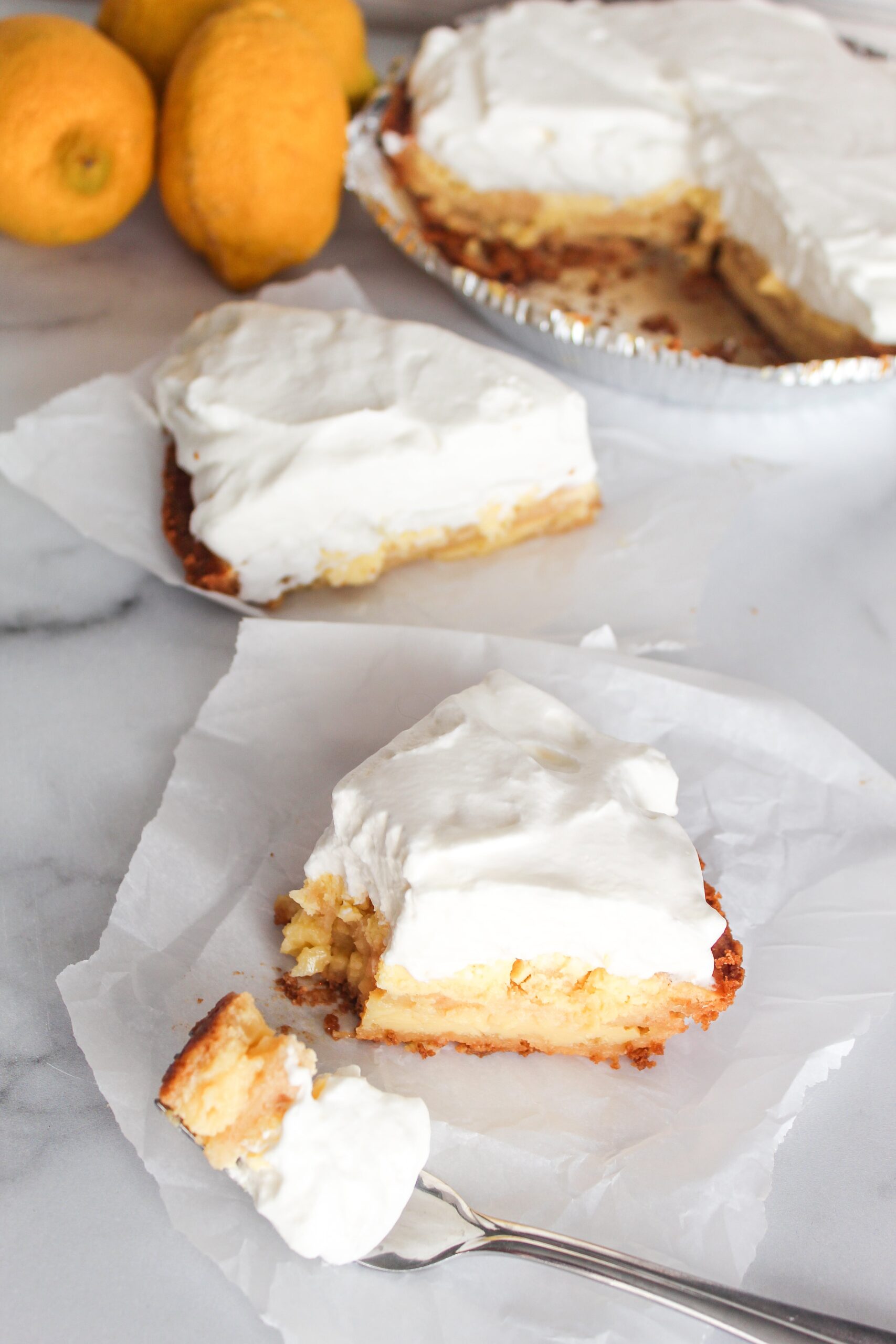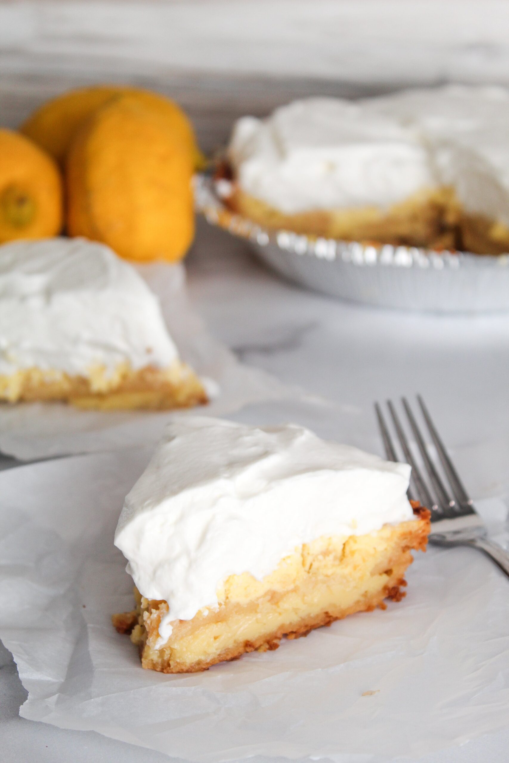 Don't be intimidated by the idea of making a custard-y lemon pie – I promise it a mix, dump, and bake recipe!
