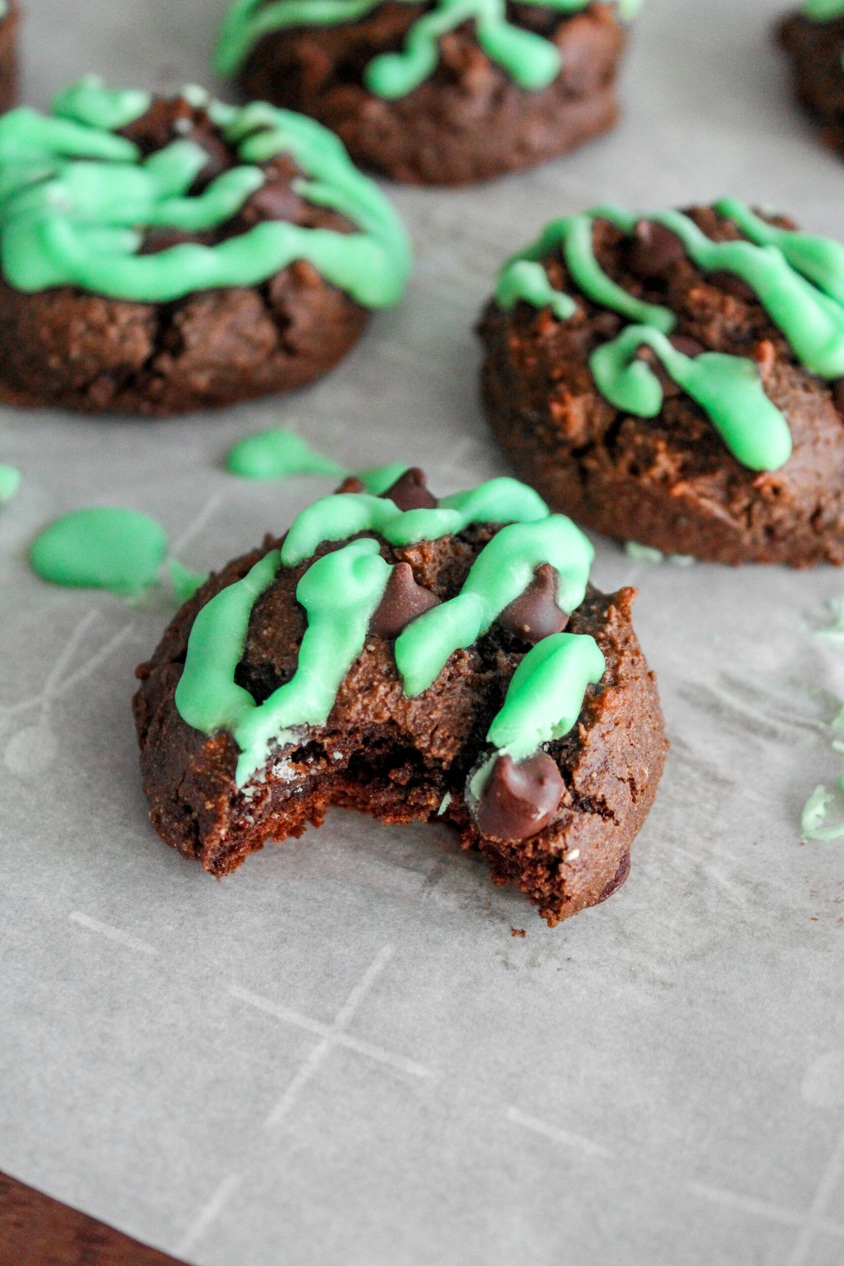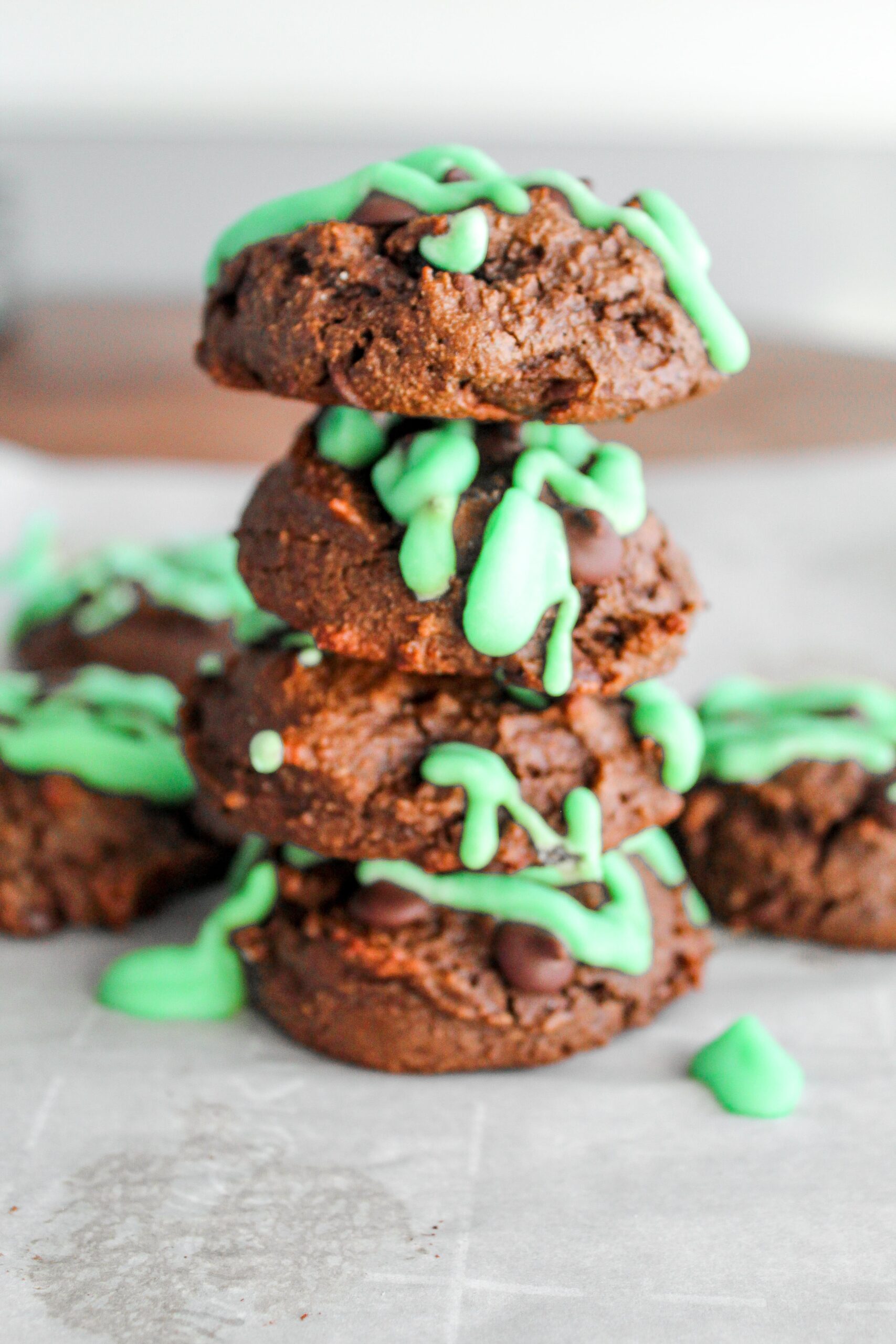 - Slowly mix in enough Almond Milk to make the batter a cookie consistency. Mix in mint chocolate chips.