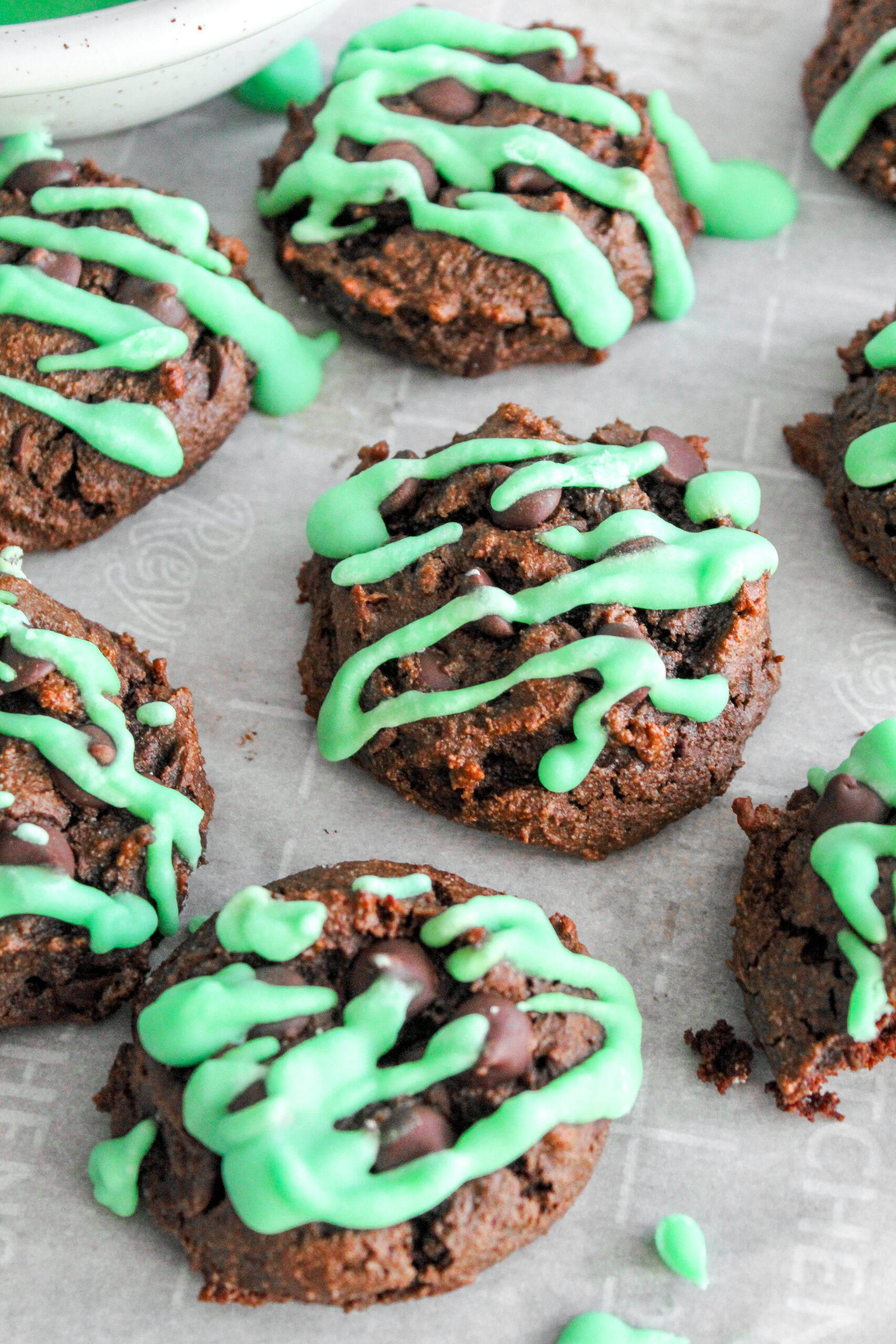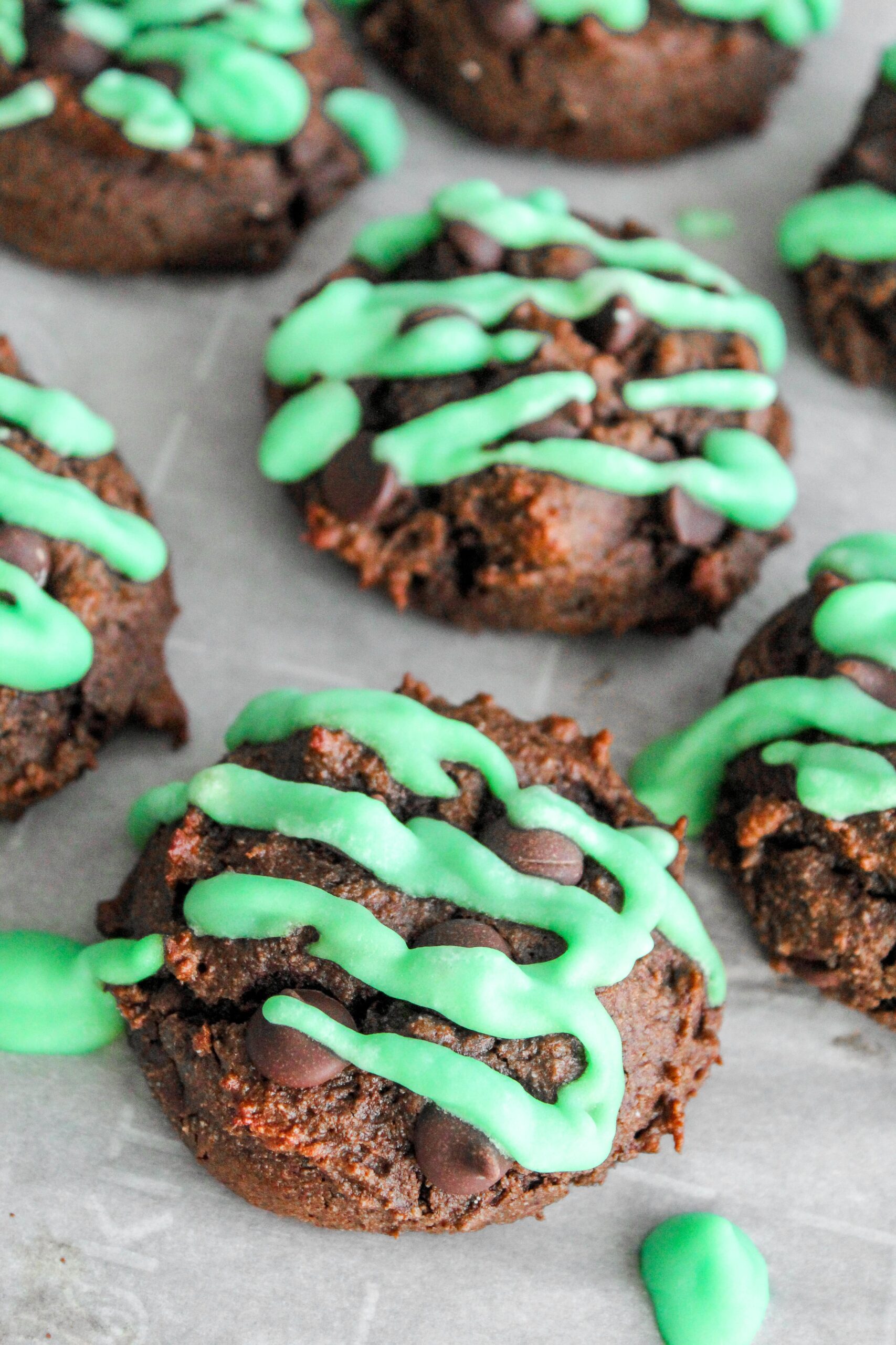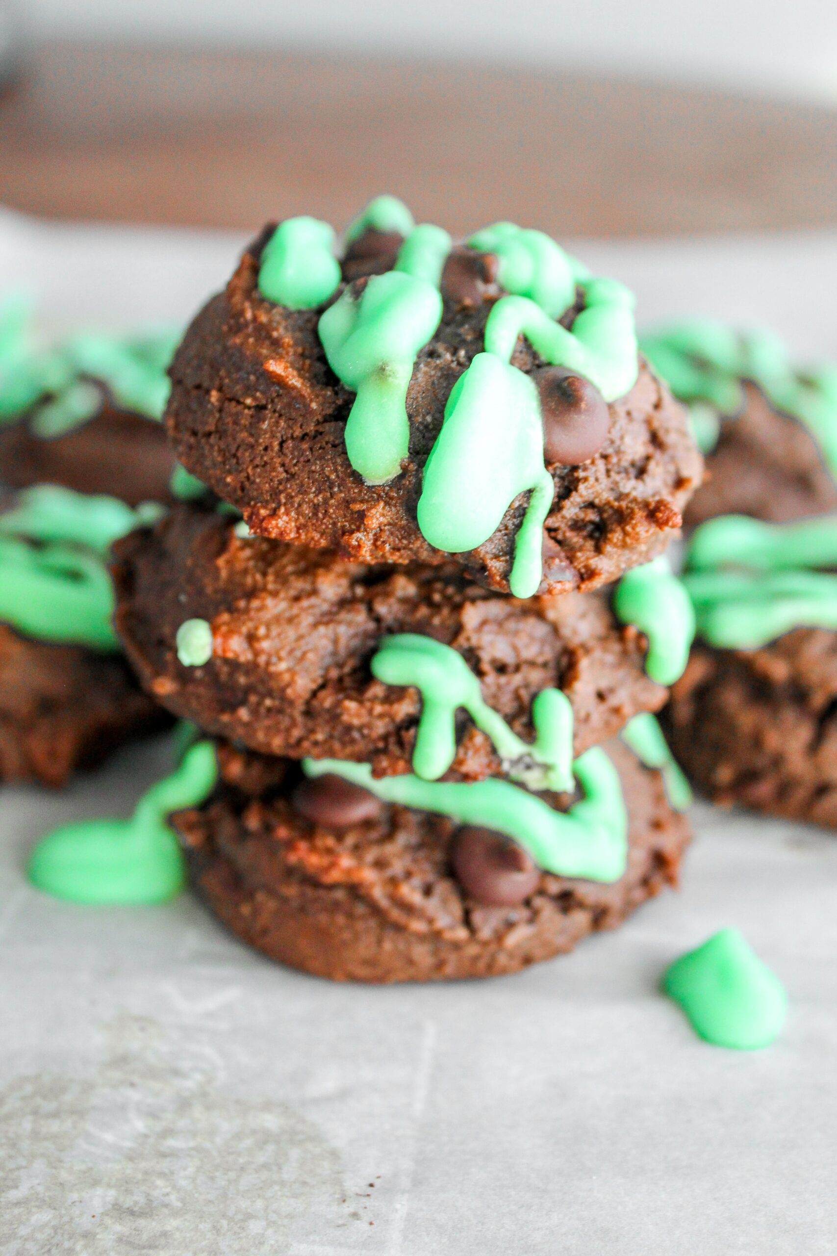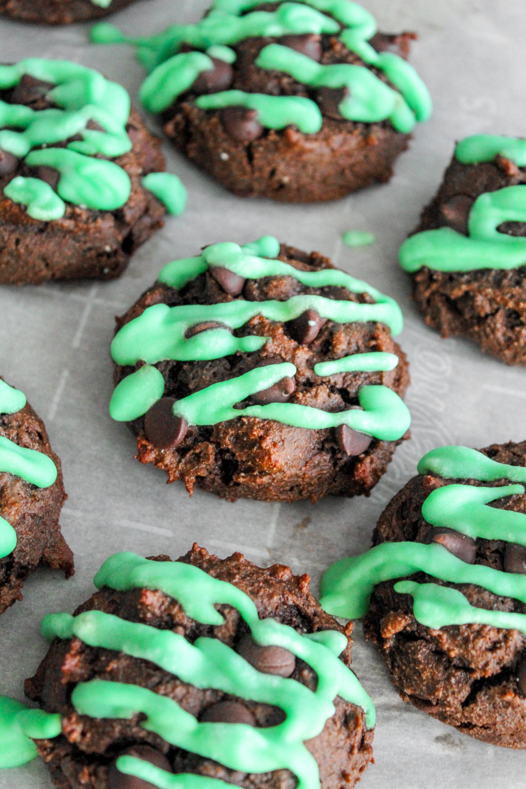 Like eating mint chocolate chip ice cream in cookie form, these Keto Mint Chocolate Chip Cookies in a warm, fresh-from-the-oven cookie! They're soft chocolate cookies, with sugar free mint chocolate chips, and drizzled with mint colored icing! Delicious and healthy!