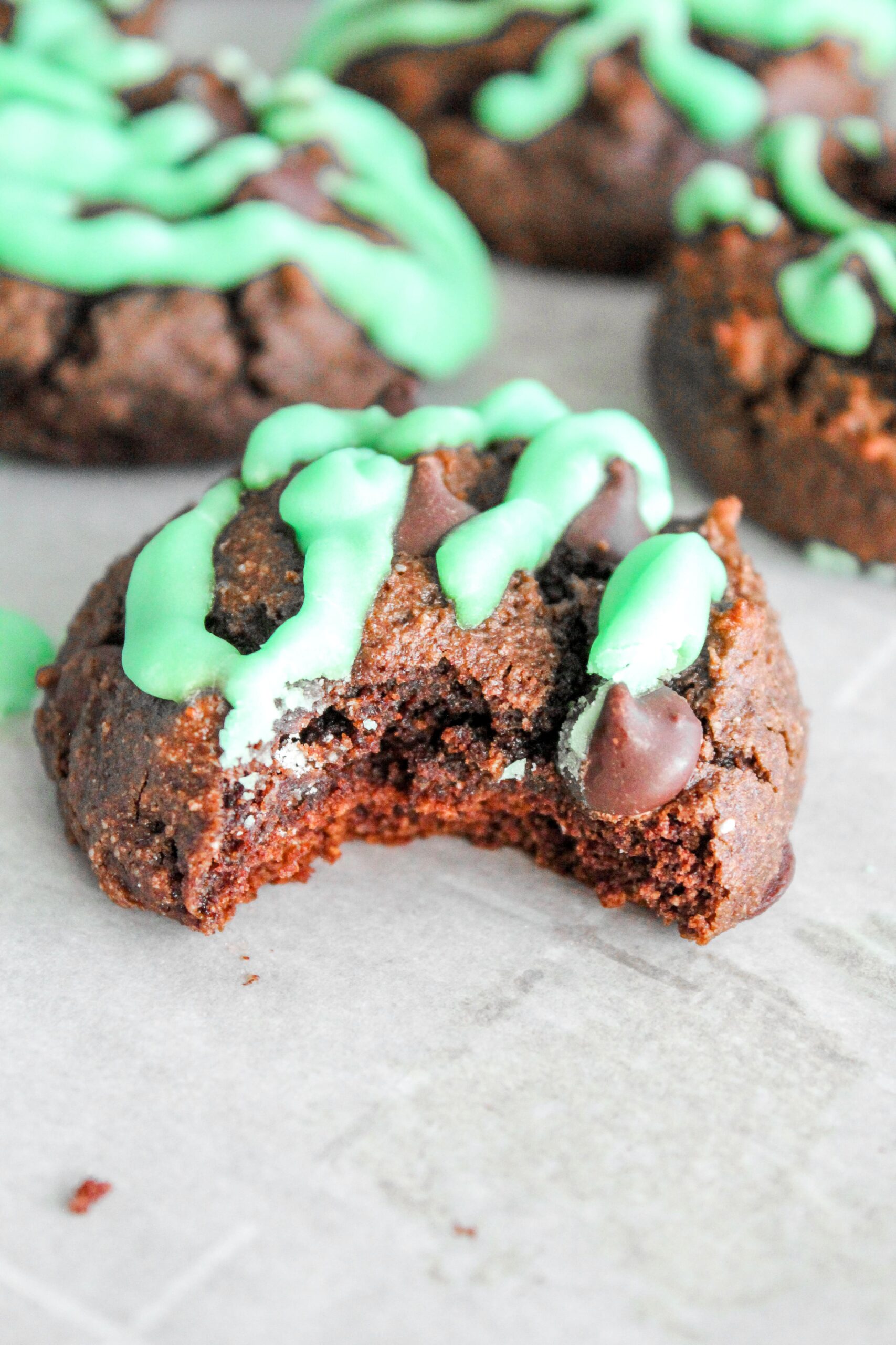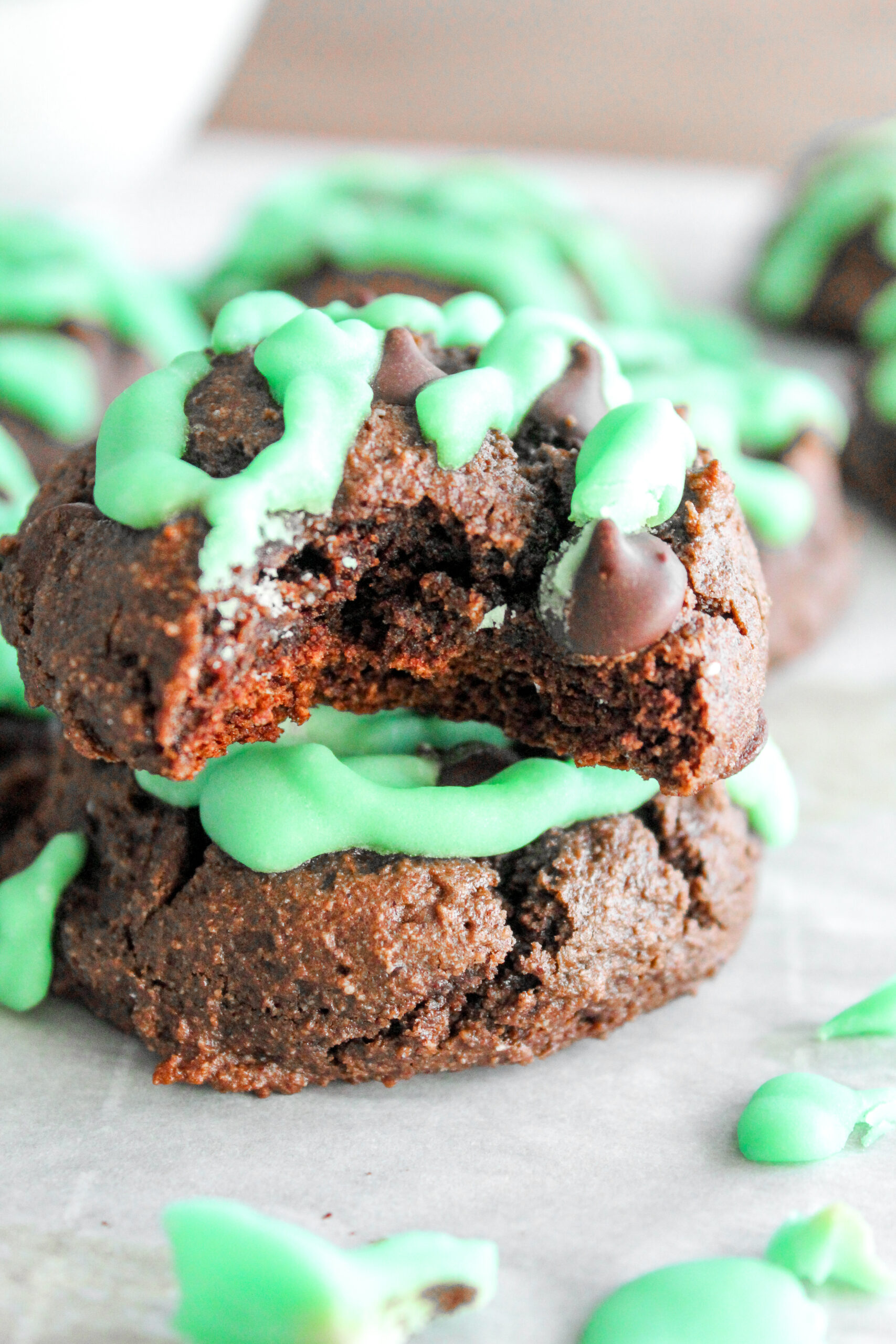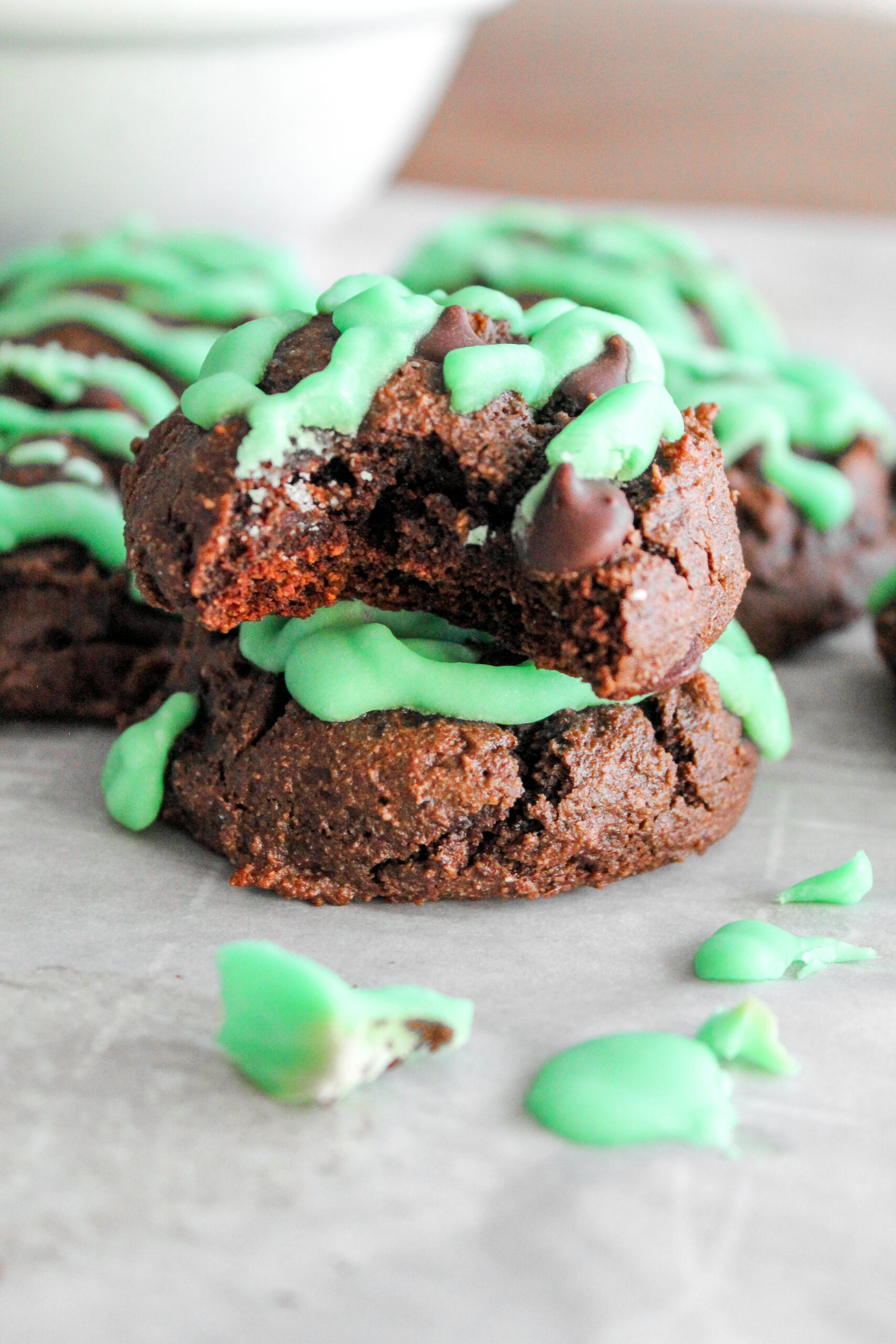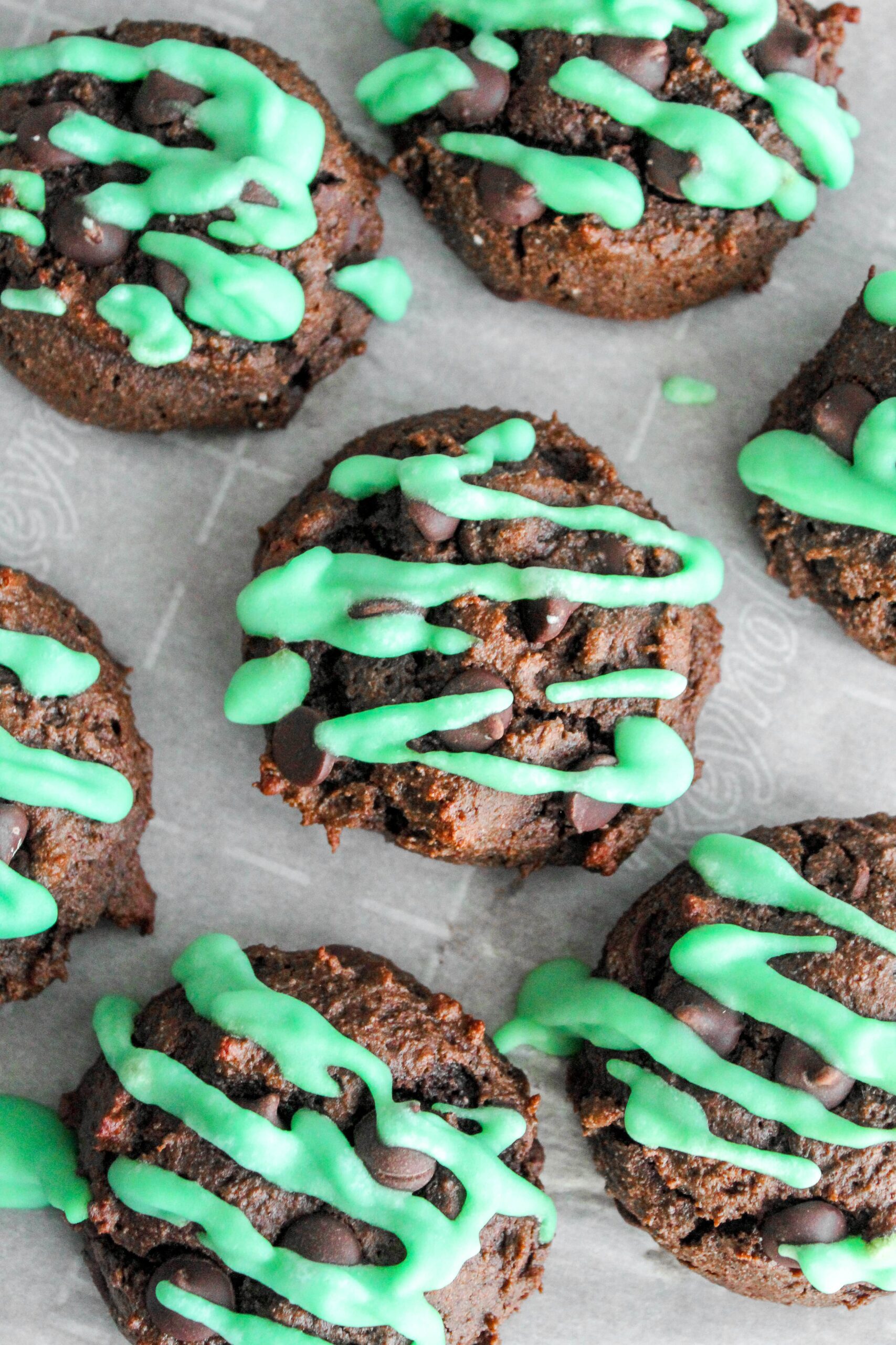 Like eating mint chocolate chip ice cream in cookie form, these Keto Mint Chocolate Chip Cookies in a warm, fresh-from-the-oven cookie! They're soft chocolate cookies, with sugar free mint chocolate chips, and drizzled with mint colored icing! Delicious and healthy!