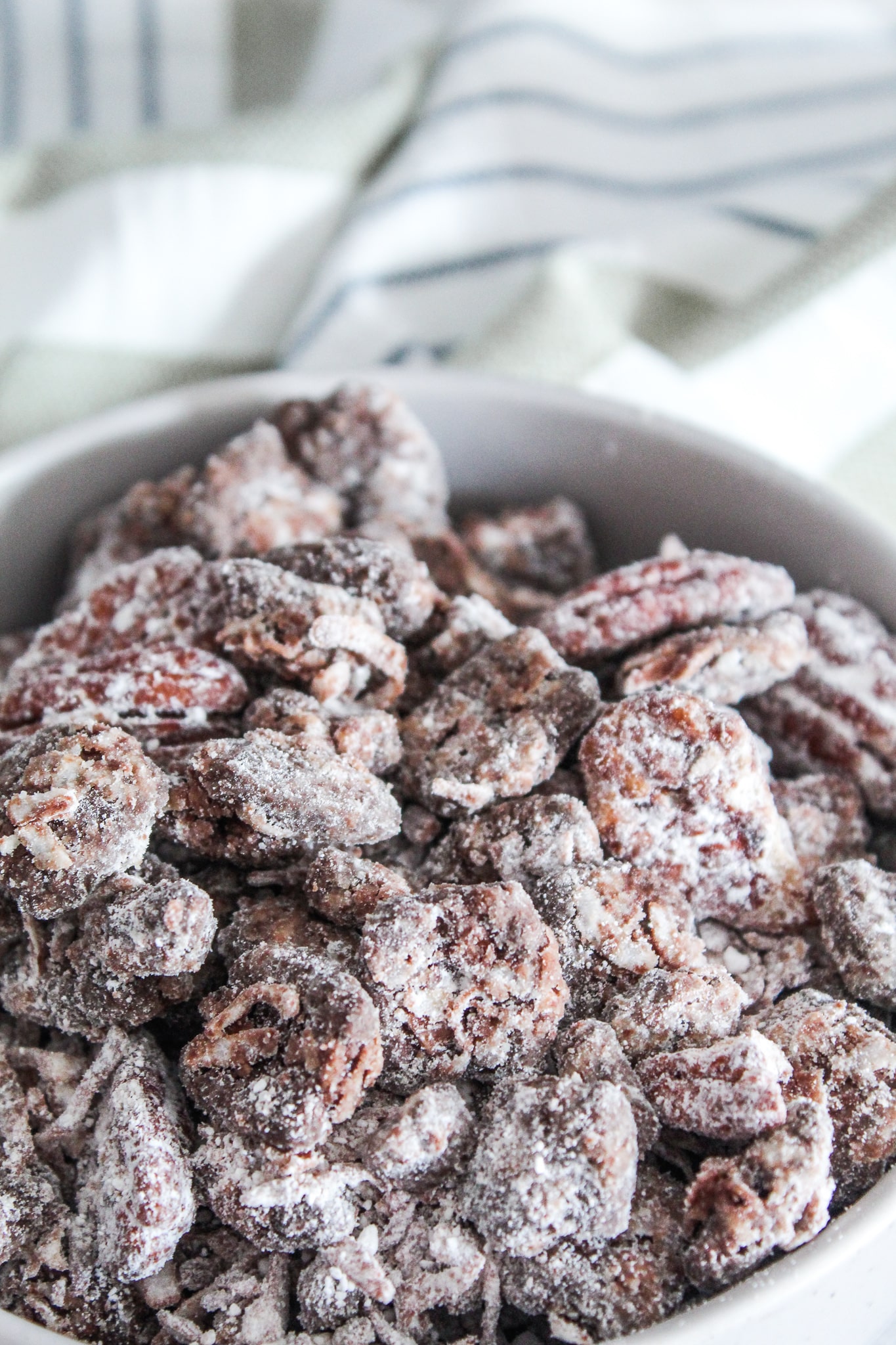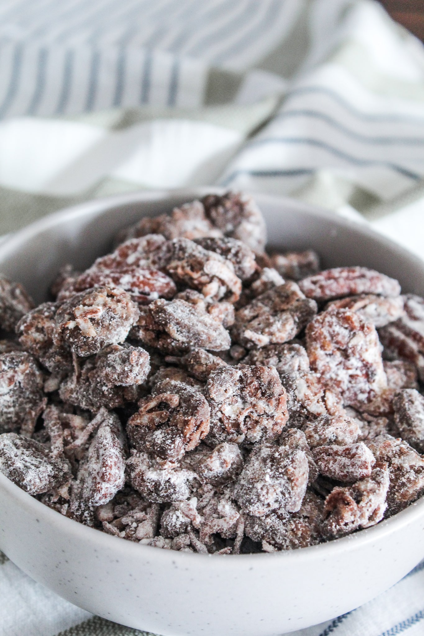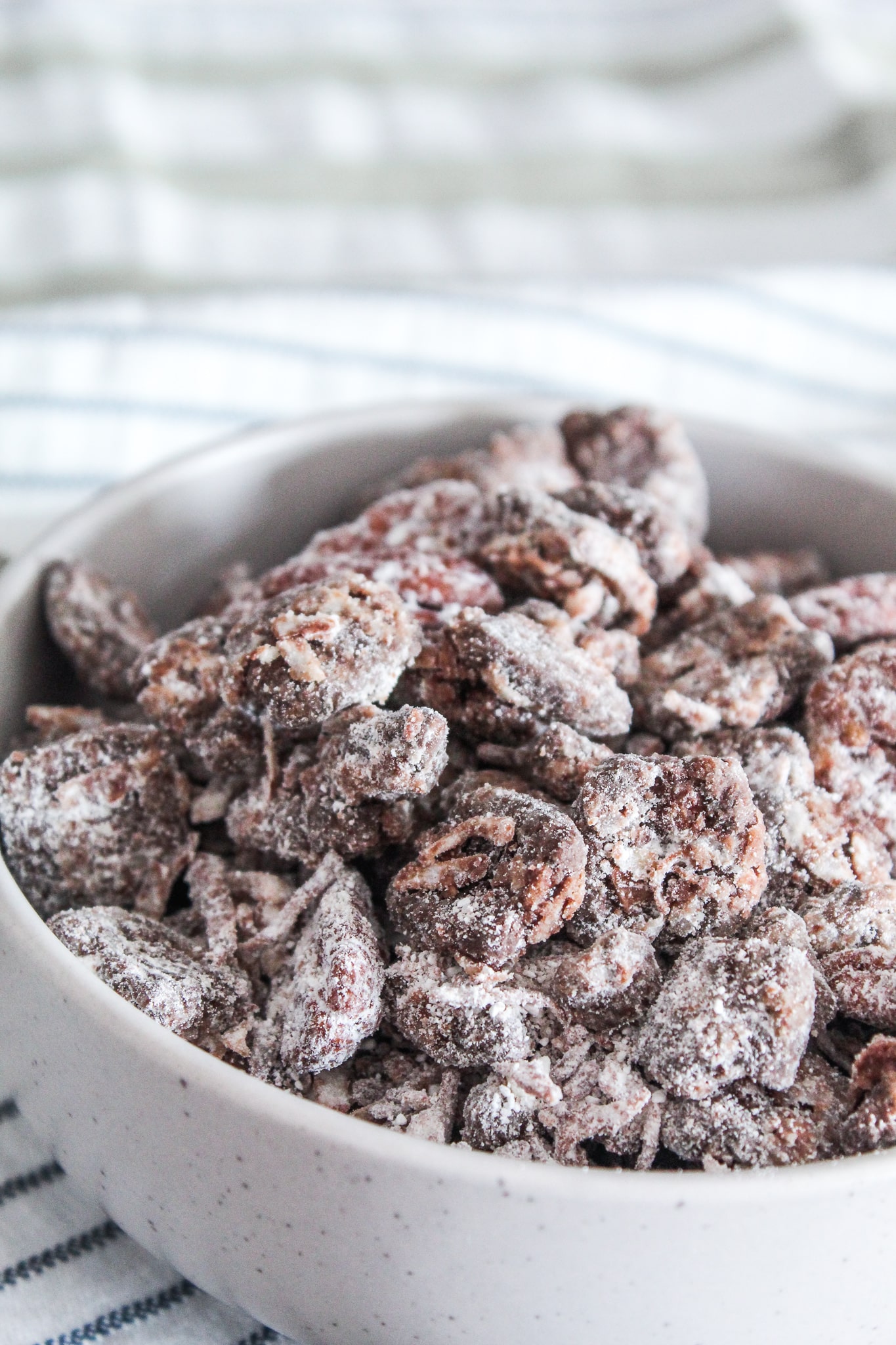 You've probably figured out by now that this is a copycat recipe of those Chex Muddy Buddies that you see in the grocery story, or the homemade version your mom probably made growing up. We called the homemade stuff Puppy Chow -it was only after I started high school that Chex came out with their bagged grocery store muddy buddies.