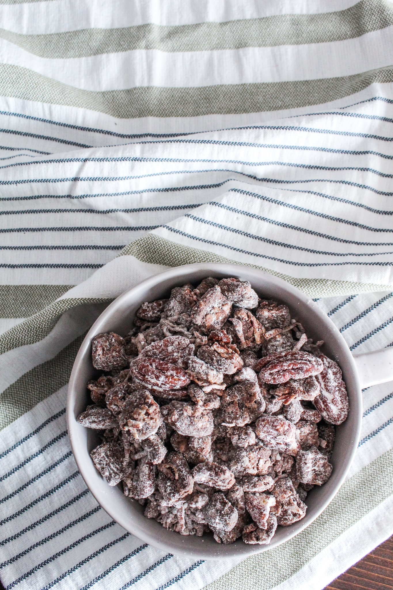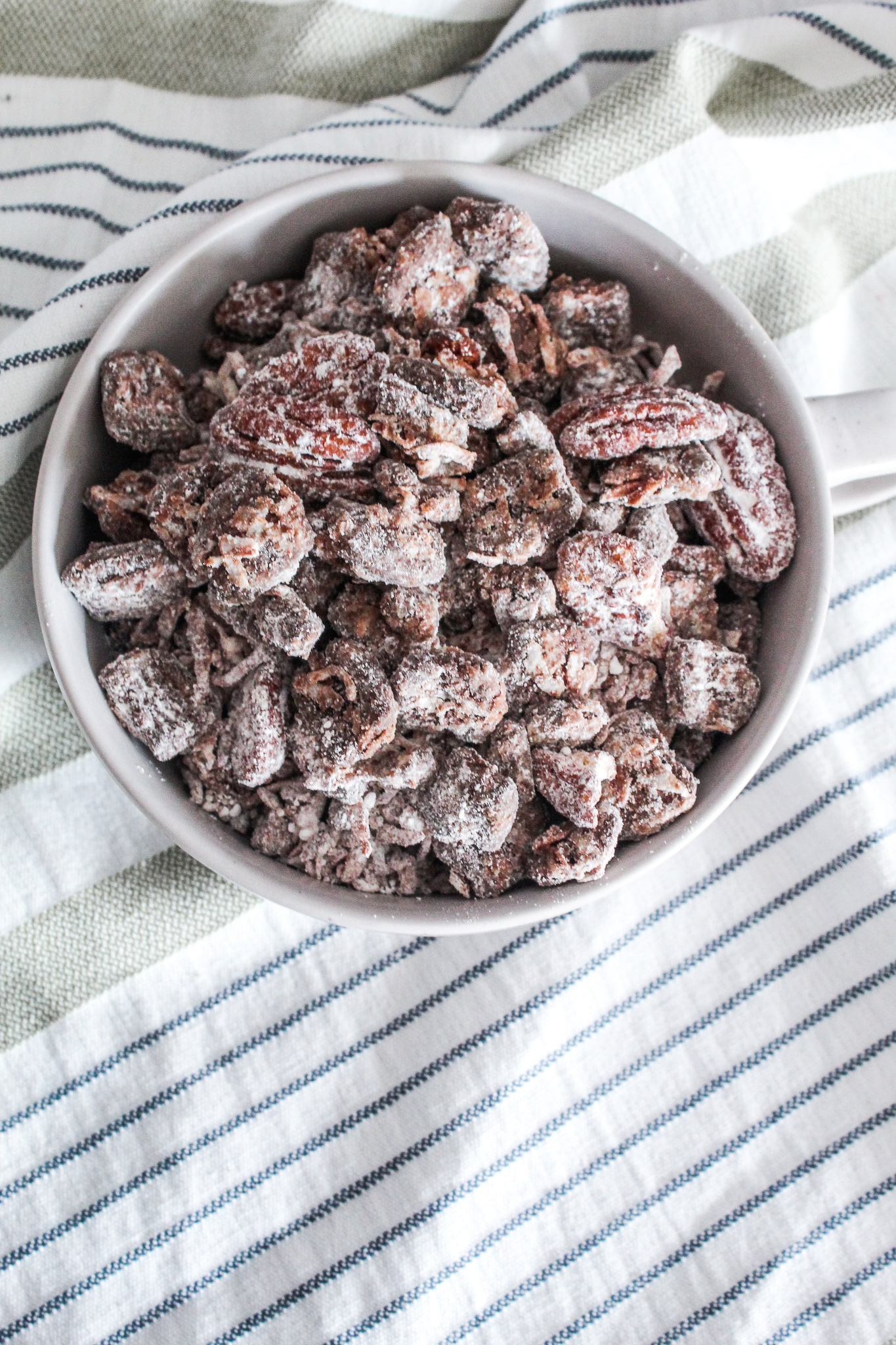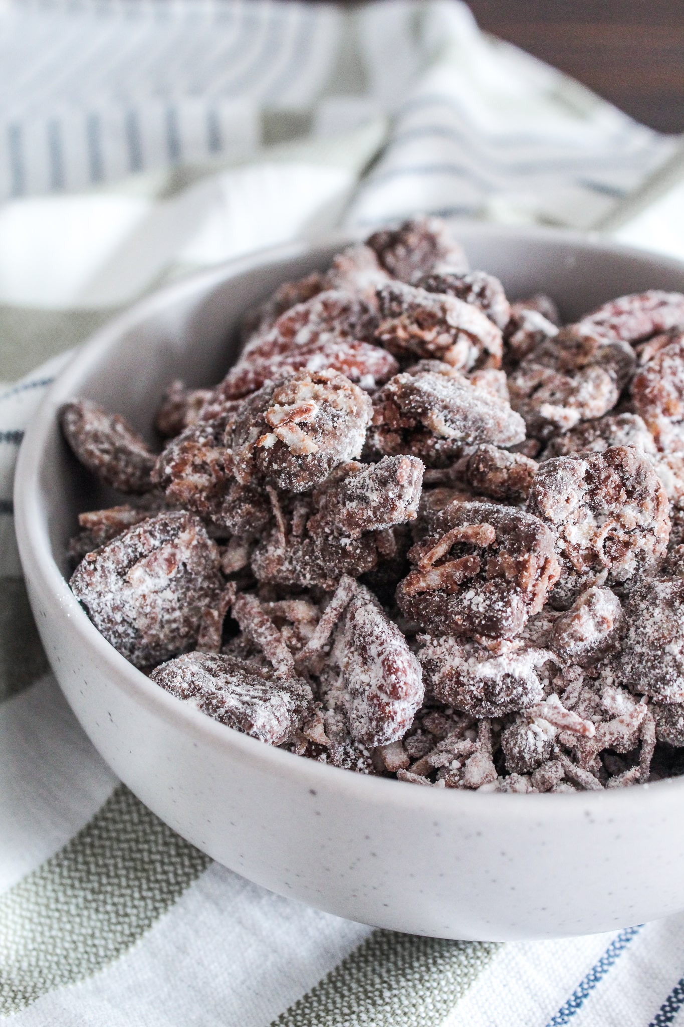 You've probably figured out by now that this is a copycat recipe of those Chex Muddy Buddies that you see in the grocery story, or the homemade version your mom probably made growing up. We called the homemade stuff Puppy Chow -it was only after I started high school that Chex came out with their bagged grocery store muddy buddies.