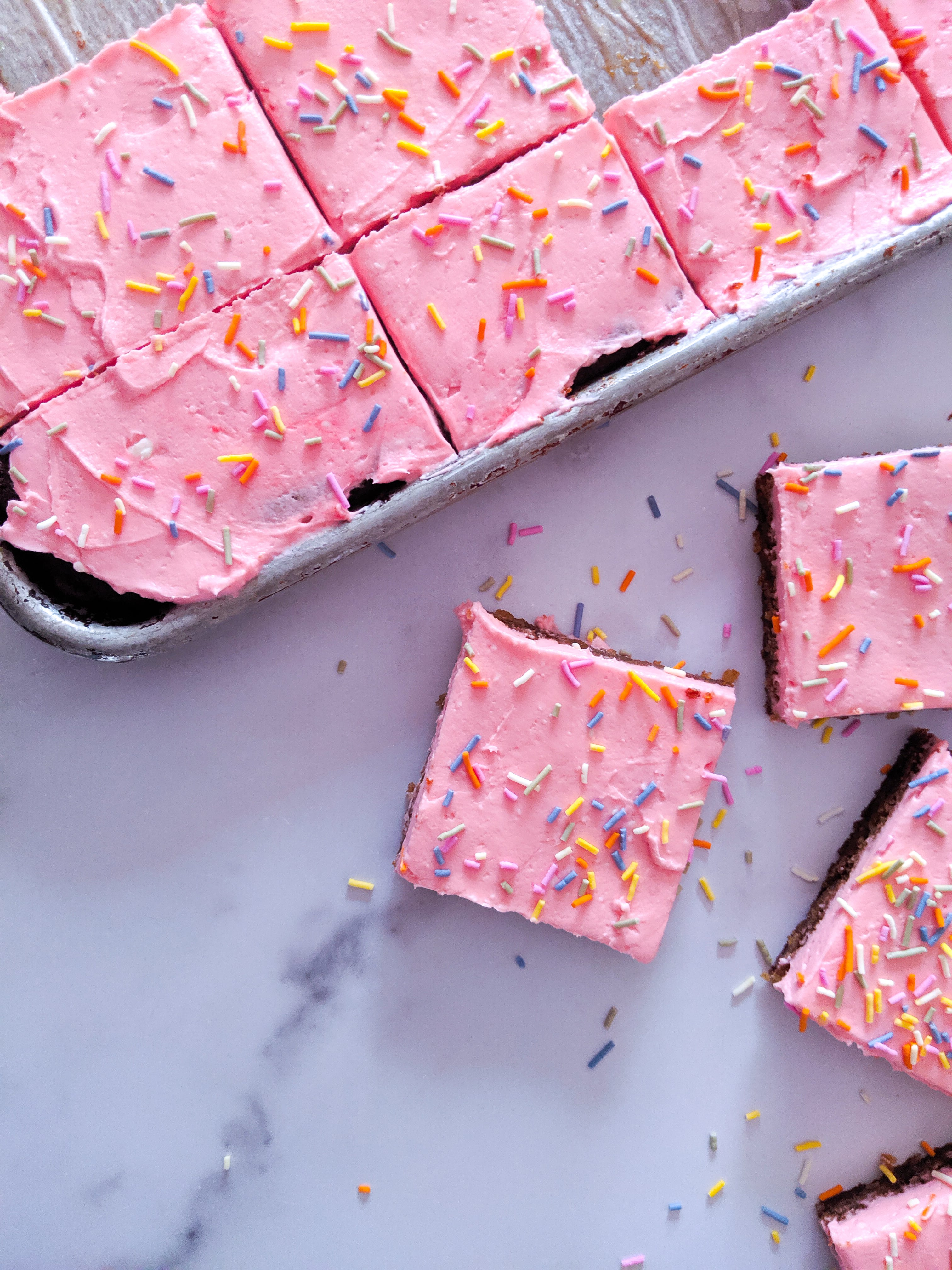 Soft, thick, and fluffy Keto Sugar Cookie Bars topped with a smooth, sweet frosting and sprinkles. Baked in a sheet pan, these Keto Sugar Cookie Bars are great for a crowd!