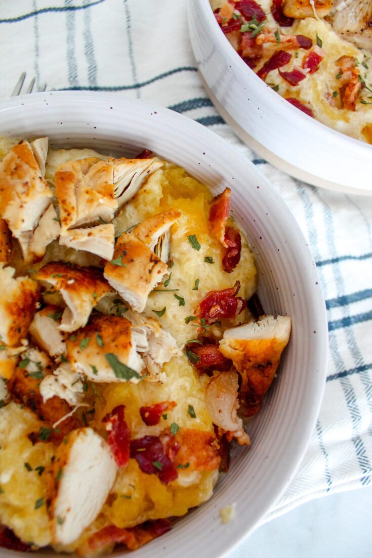 Instead, we'll make a smaller portion of cream sauce to accompany the bacon and spaghetti squash, not overwhelm it. If you like more cream sauce, then absolutely feel free to double the recipe!