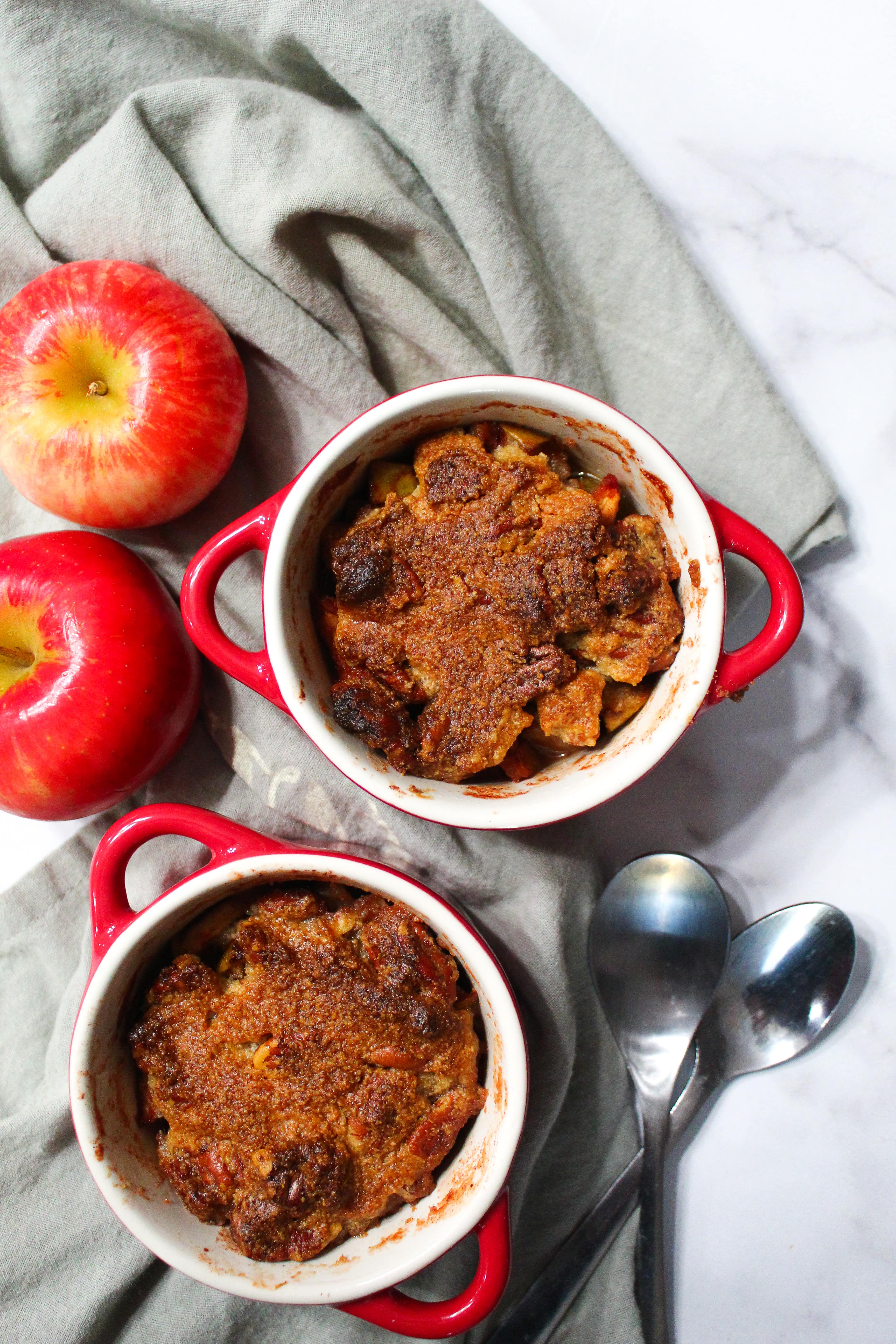 So when I came across cute little individual lidded baking dishes at Aldi, I knew I had to modify my original Keto Apple Crisp into a smaller, more manageable portion for two people.