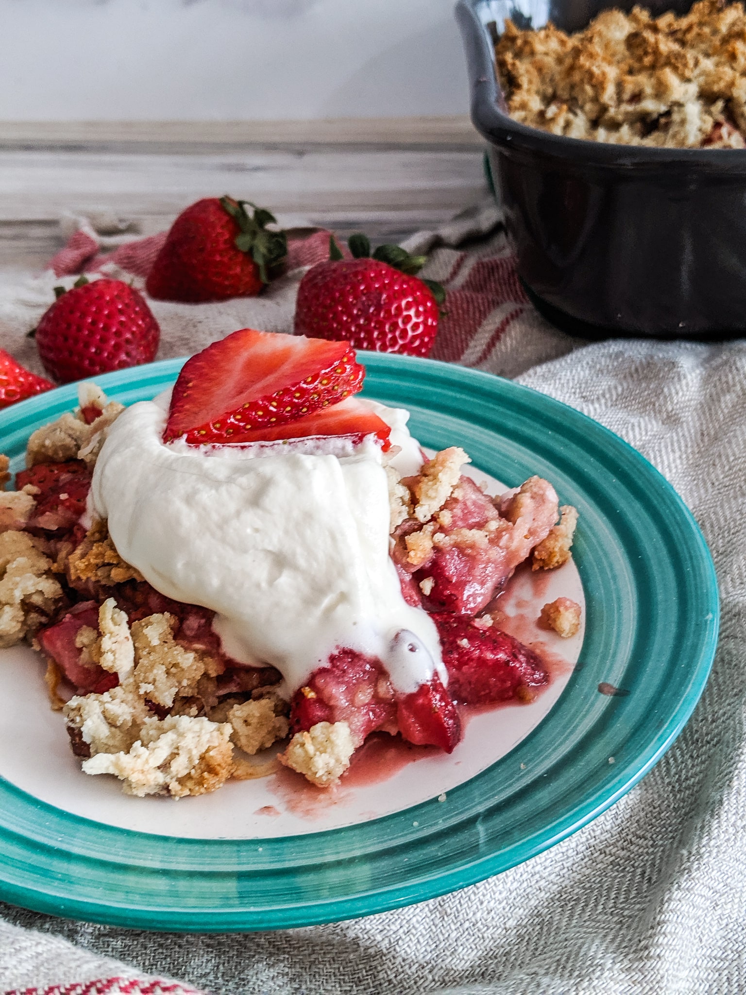 The crumble is buttery, the strawberry sweetness is on-point, and when you put this Paleo Strawberry Crisp with some of my Keto Vanilla Ice Cream, you're in heaven!